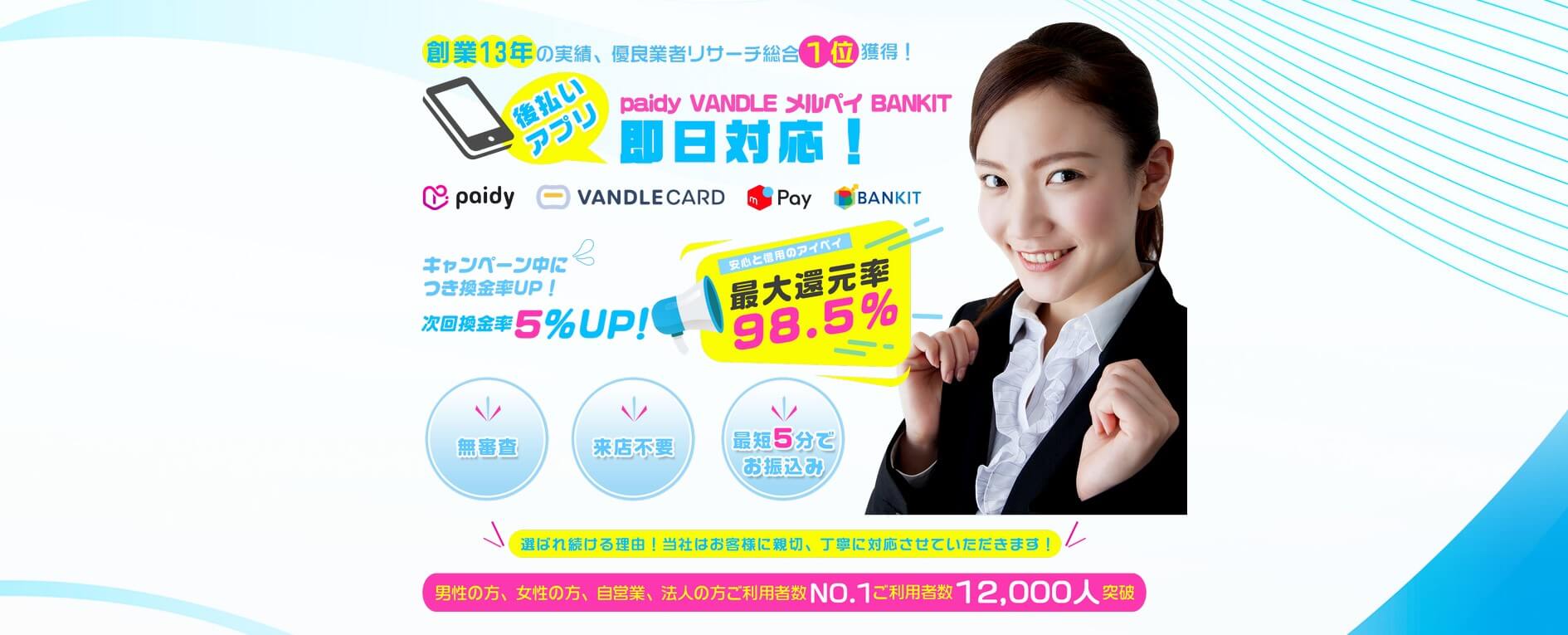 換金率アップのお得なキャンペーンも随時開催!急な出費にも対応できるサービス