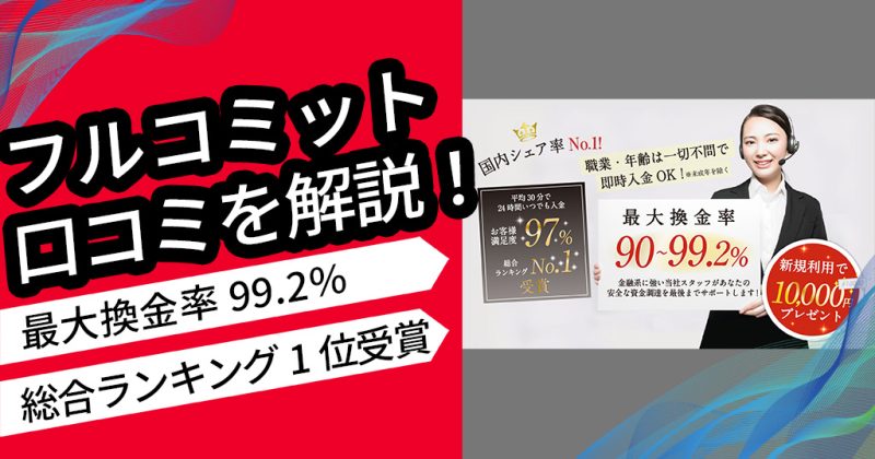 Aさん 土日に急な出費がある Bさん 今すぐ現金がないと困る フルコミットは換金率が高く、入金スピードが速い現金化業者として知られています。 換金率は高ければ高いほど良いですし、入金スピードは早い方が安心です。 そんなフルコミットの情報を口コミ... -