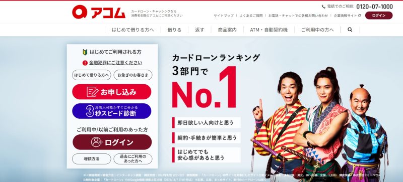また、アコムは「Web完結サービス」に対応しており、スマホがあれば申込から借入まで最短20分で完了できるため、仕事で忙しい方にもおすすめ。ただし、借入金の返済が遅れると、電話や催促状の郵送により職場の人や家族にバレる可能性が高くなるので気を付けましょう。
