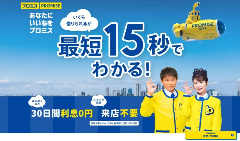 「プロミス」は、専用アプリで借入から返済まで行える「アプリローン」を展開している業者で、スマホから24時間365日いつでも借入できるメリットがあります。またプロミスでは、WEBで契約すると初回借入日の翌日より30日間の無利息期間サービスが適用されるため、1カ月以内に全額返済できれば利息はかかりません。