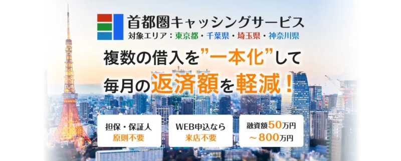 「首都圏キャッシングサービス」は、柔軟な審査が魅力の中小消費者金融で、特に「おまとめローン」に特化しています。例えば複数のカードローンやキャッシングの融資を1つにまとめることで、支払い日を月1回にまとめられます。